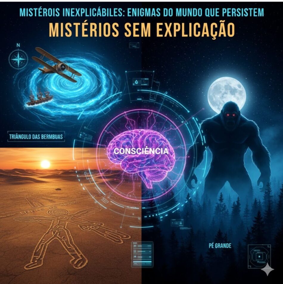 Não podemos esquecer do Pé Grande (Bigfoot), a criatura lendária que supostamente habita florestas da América do Norte, com relatos e “evidências” que surgem de tempos em tempos, mas sem provas concretas de sua existência. E, claro, a complexidade da consciência humana em si: como a matéria cerebral cria a experiência subjetiva, os pensamentos e as emoções? Essa é talvez a maior questão filosófica e científica de todas.